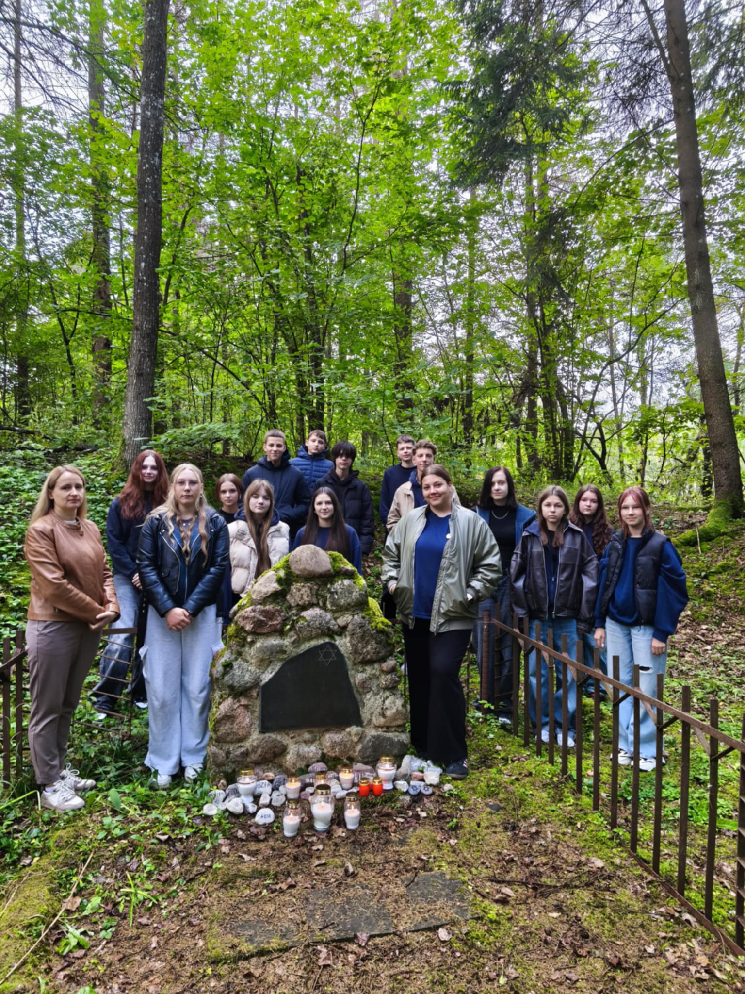 …..Mūsų gimnazijos 8 ir IIG klasių mokiniai kartu su lietuvių kalbos ir literatūros bei istorijos mokytojais prisijungė prie pilietinės iniciatyvos „Atminties kelias“, skirtos simboliškai pagerbti žuvusiuosius, einant keliu, vedusiu į jų žūties vietas. Organizavome netradicines, integruotas istorijos bei lietuvių kalbos ir literatūros pamokas, prisiminėme Holokausto metu sunaikintas gausias Lietuvos žydų bendruomenes, aplankėme Paberžės žydų žudynių vietą ir kapus. Aplankytose vietose mokiniai padėjo akmenėlius su vardais ir Dovydo žvaigždėmis. O ant aukų kapų uždegė atminimo žvakutes.