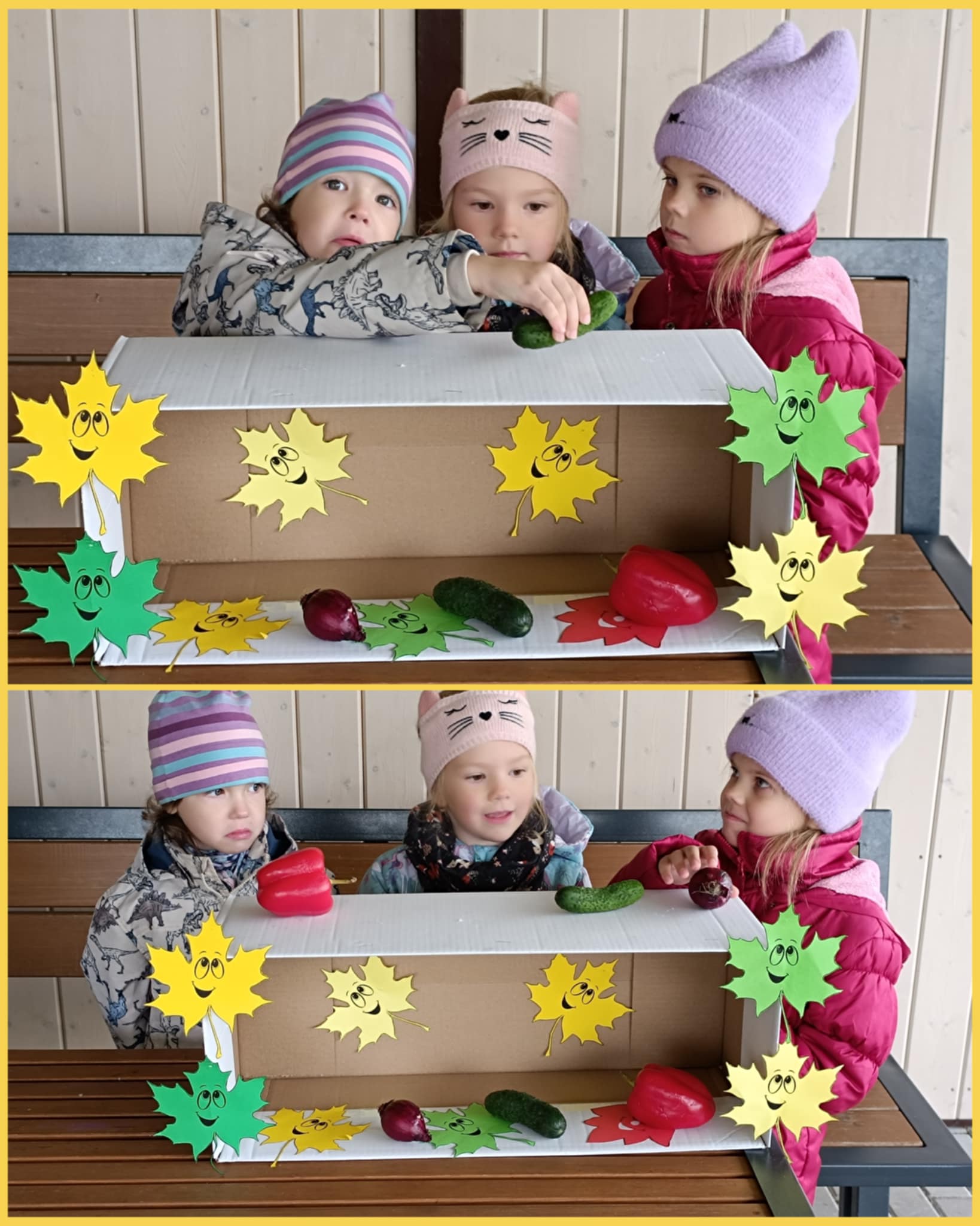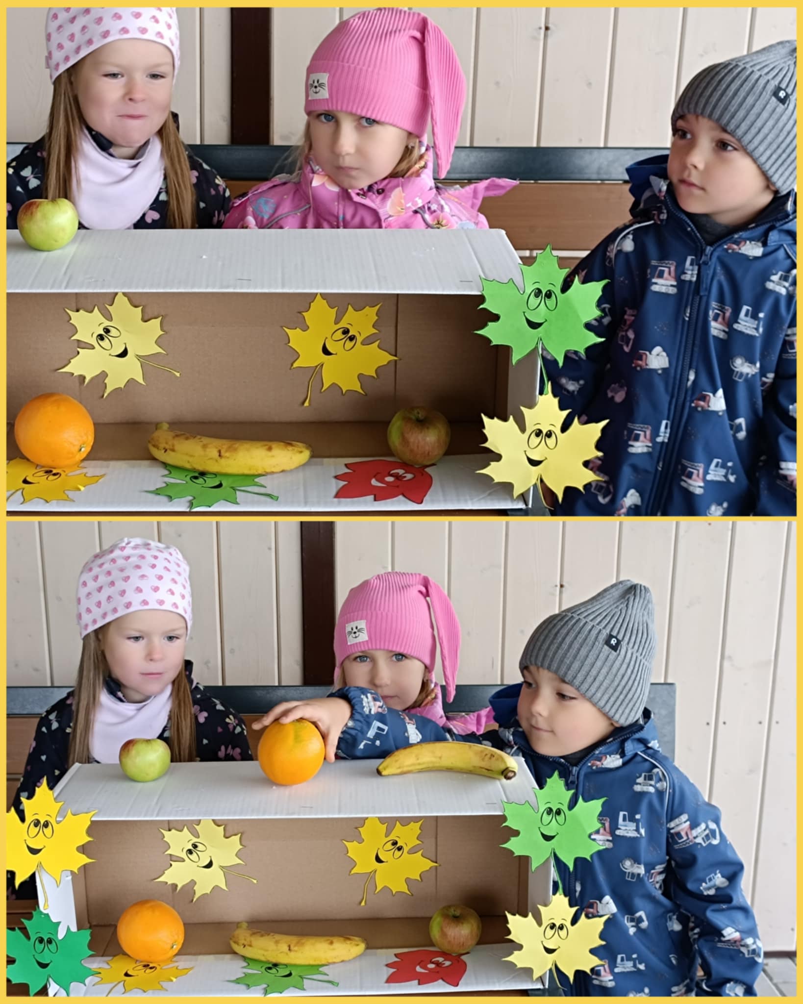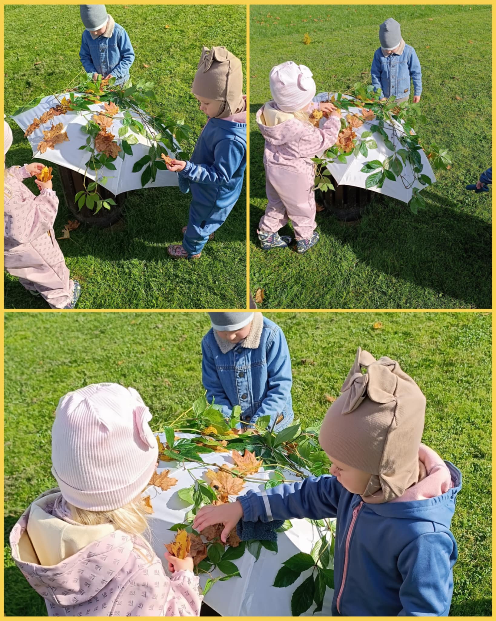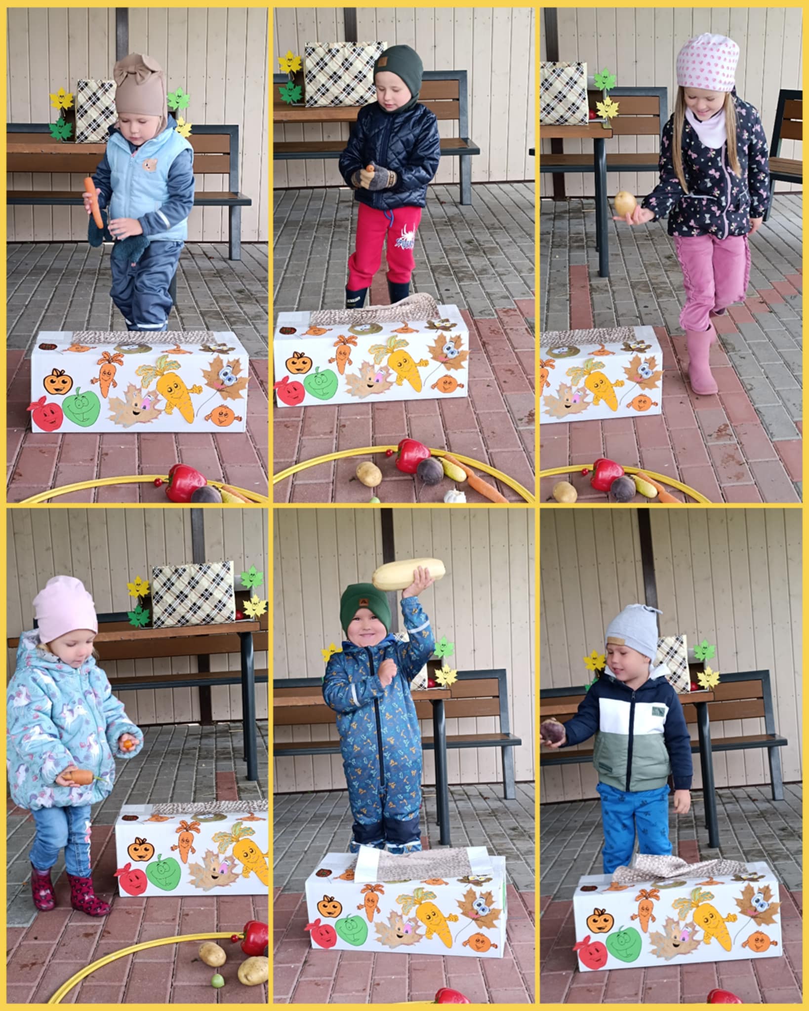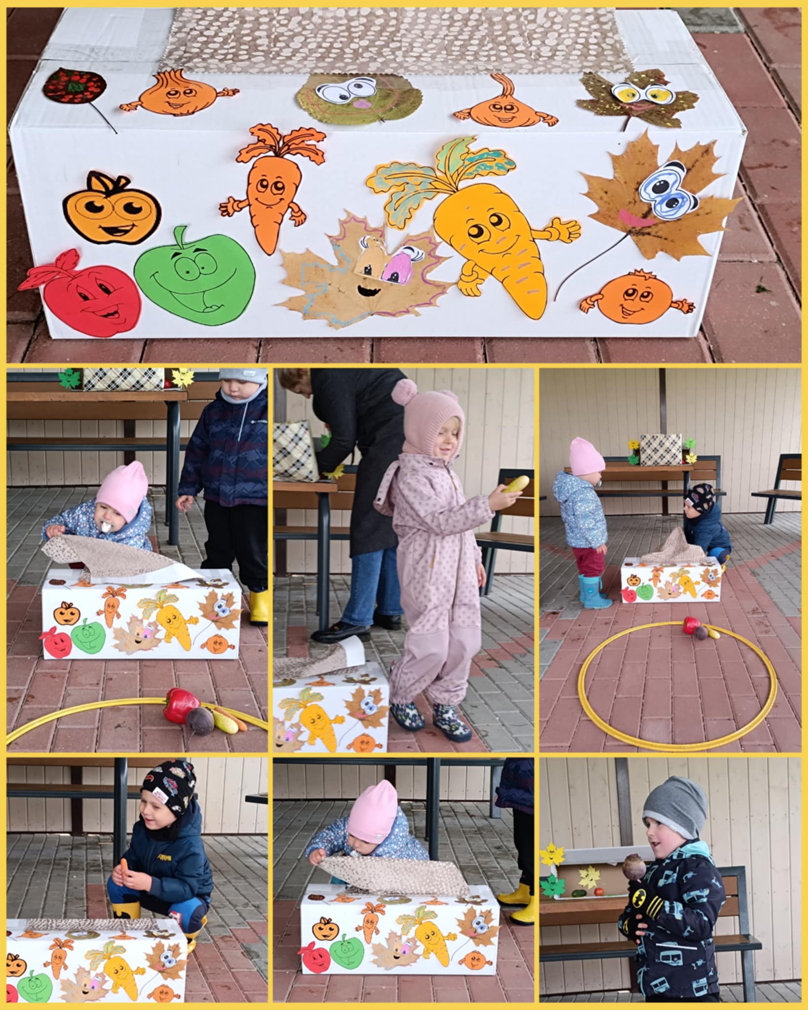 …..Linksmasis pokštininkas Rudenėlis parašė vaikams laišką, kuriame pakvietė drauge atlikti smagias užduotis ir pažaisti. Pirmoji užduotis buvo spalvų žaidimas „Skėtis ir lapai“. Mažieji pramogautojai turėjo žaidimų aikštelėje surasti gražių spalvotų lapų ir jais papuošti Rudenėlio draugą – baltąjį Skėtį. Antrosios užduoties metu Rudenėlis kvietė savo draugus sušilti ir dalyvauti judriosiose estafetėse. Vaikai šokinėjo per „balas“, įveikė kliūčių ruožą, dalyvavo taiklumo rungtyje. Trečioji užduotis buvo „Stebuklingos dėžutės“. Pirmoji dėžutė buvo skirta vyresnėliams – vaikai bandė atspėti ir sudėlioti daržovių bei vaisių sekas. Mažyliai atrado antrąją dėžutę, kurioje slėpėsi rudens gėrybės. Ketvirtoji užduotis kvietė vaikus į kūrybines gamtos medžiagų dirbtuvėles. Čia vaikai, naudodami gamtines medžiagas, kūrė paveikslėlius ir linksmus Rudenėlio veidukus. Pramogos pabaigoje mažieji Rudenėlio draugai sutiko linksmąjį skambantį Vėją, kartu su juo žaidė ir klausėsi nuostabios muzikos.
