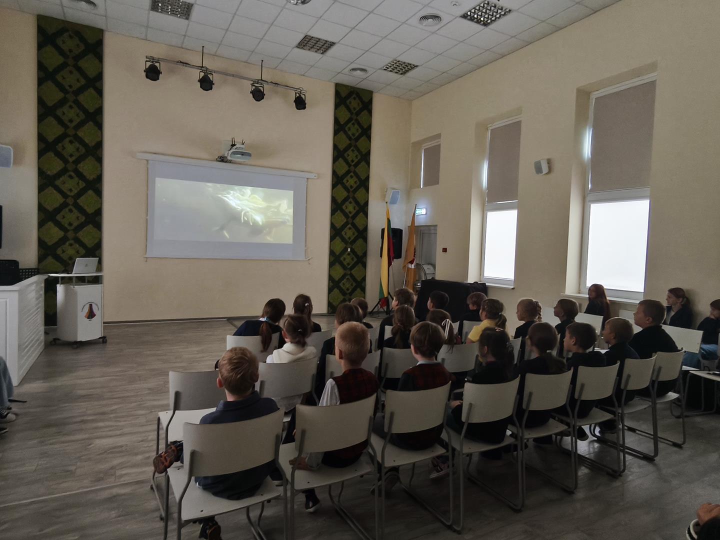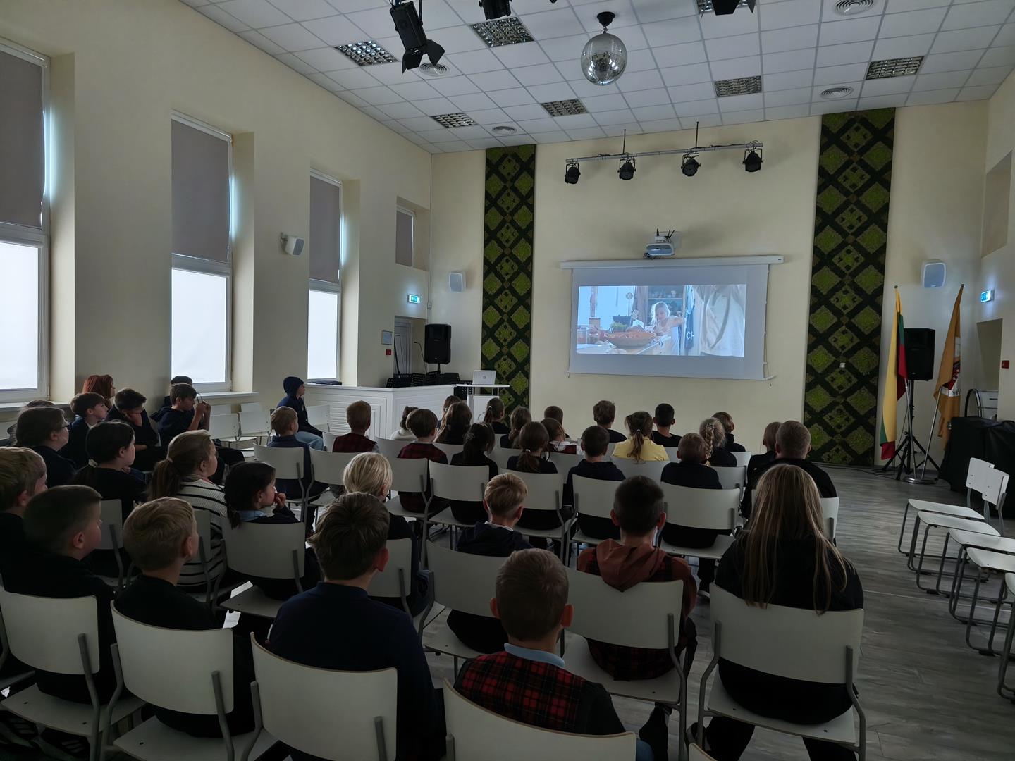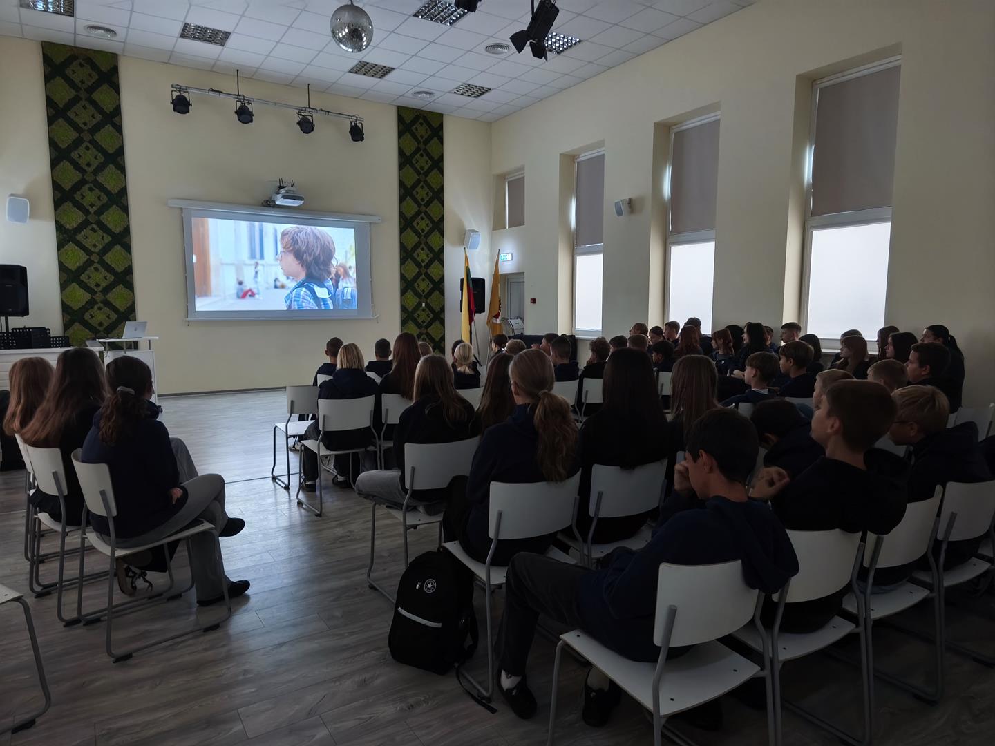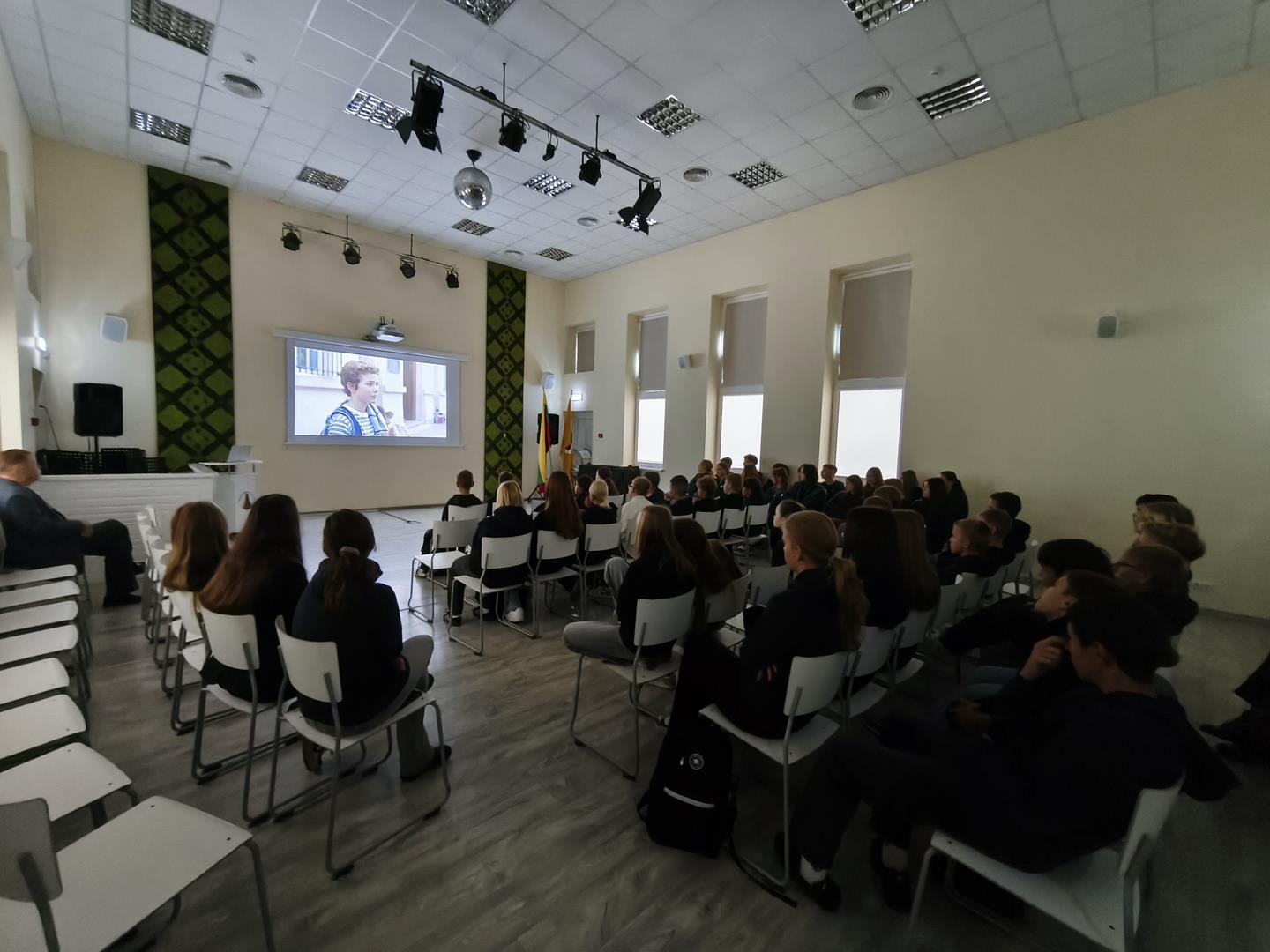 …..Rugsėjo 29 d. gimnazijoje vyko kino sklaidos projektas „Kino busas“. Šio projekto tikslas – skatinti mokinius žiūrėti filmus, juos analizuoti ir vertinti, lavinti jų vizualinį raštingumą bei kūrybiškumą, ugdyti intelektualią ir kritišką būsimąją kino žiūrovų auditoriją. Filmų programa sudaryta iš geriausių Europos vaikų ir jaunimo kino festivalių filmų. Projekto metu buvo surengtos 3 kino peržiūros su diskusijomis įvairaus amžiaus mokiniams. Diskusijas moderavo kino režisierius Andrius Blaževičius. Nuoširdžiai dėkojame Lietuvos kino centrui ir projekto vadovei Astai Thurston už galimybę dalyvauti projekte.
