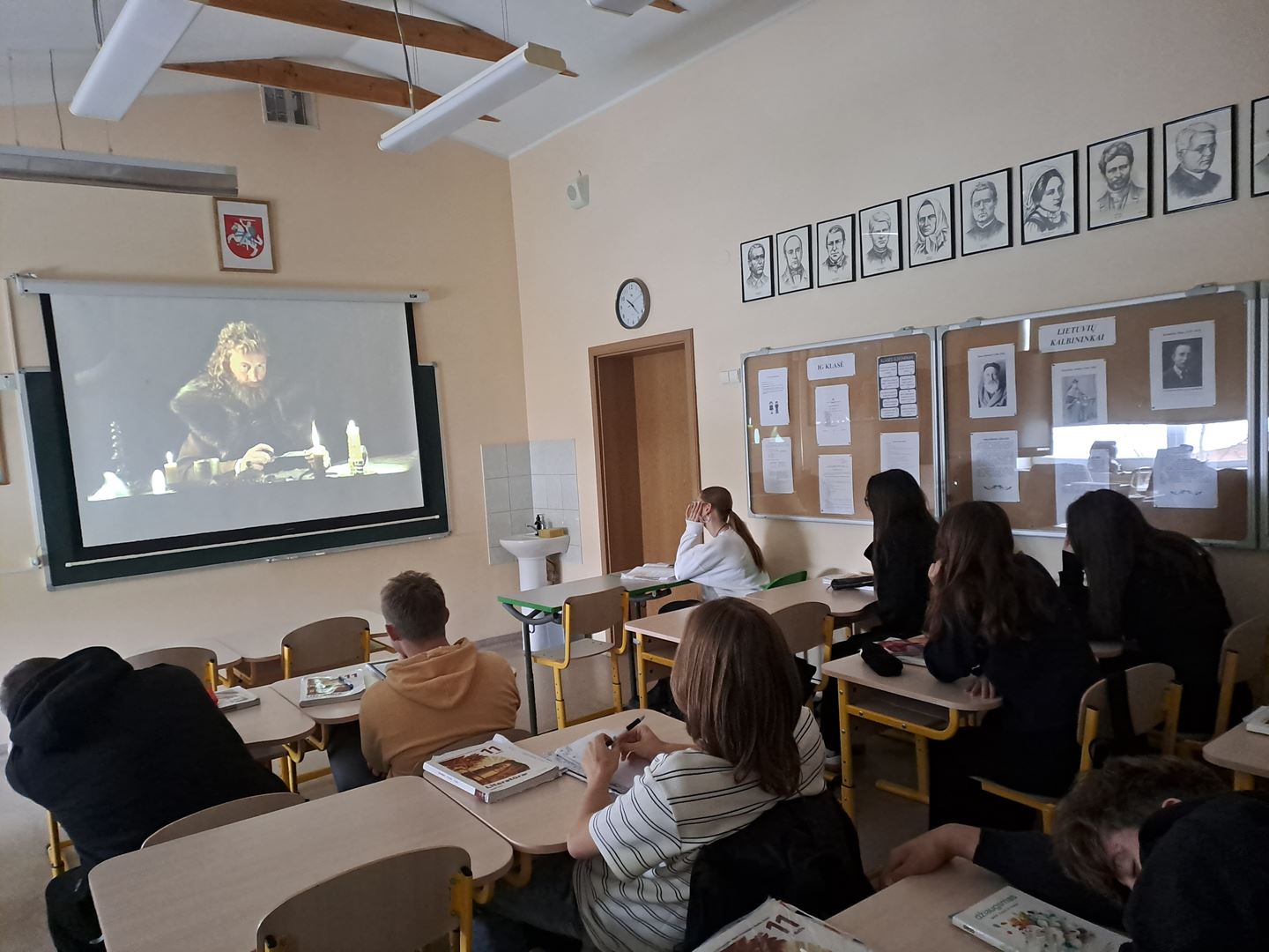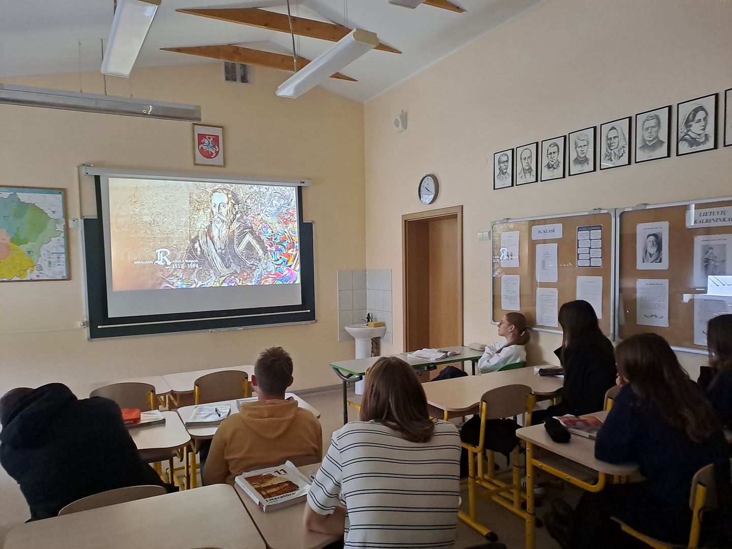 …..Lapkričio 25 dieną IIIG klasės mokiniai, pasinaudoję Kultūros paso lėšomis, praplėtė savo literatūros ir istorijos žinias. Dalyvaudami edukacijoje „Nuotolinis kino teatras! Lietuvos istorijos patirtys filme ,,Radviliada“, mokiniai sužinojo, kokią įtaką Lietuvos Didžiajai Kunigaikštystei turėjo Radvilų giminė, kaip Radvilai Rudajam pavyko nugalėti tris kartus didesnę carinės Rusijos kariuomenę Ulos mūšyje, kuo pasižymėjo Radvila Juodasis ir kodėl silpnos sveikatos Radvila Našlaitėlis ryžosi tolimai kelionei. Filme susipina šiuolaikinė jaunimo kultūra, kino kūrimo užkulisiai ir istorikų komentarai, todėl edukacija puikiai praturtino ir literatūros pamoką — padėjo geriau suprasti istorinį bei kultūrinį foną, svarbų daugeliui lietuvių literatūros kūrinių.