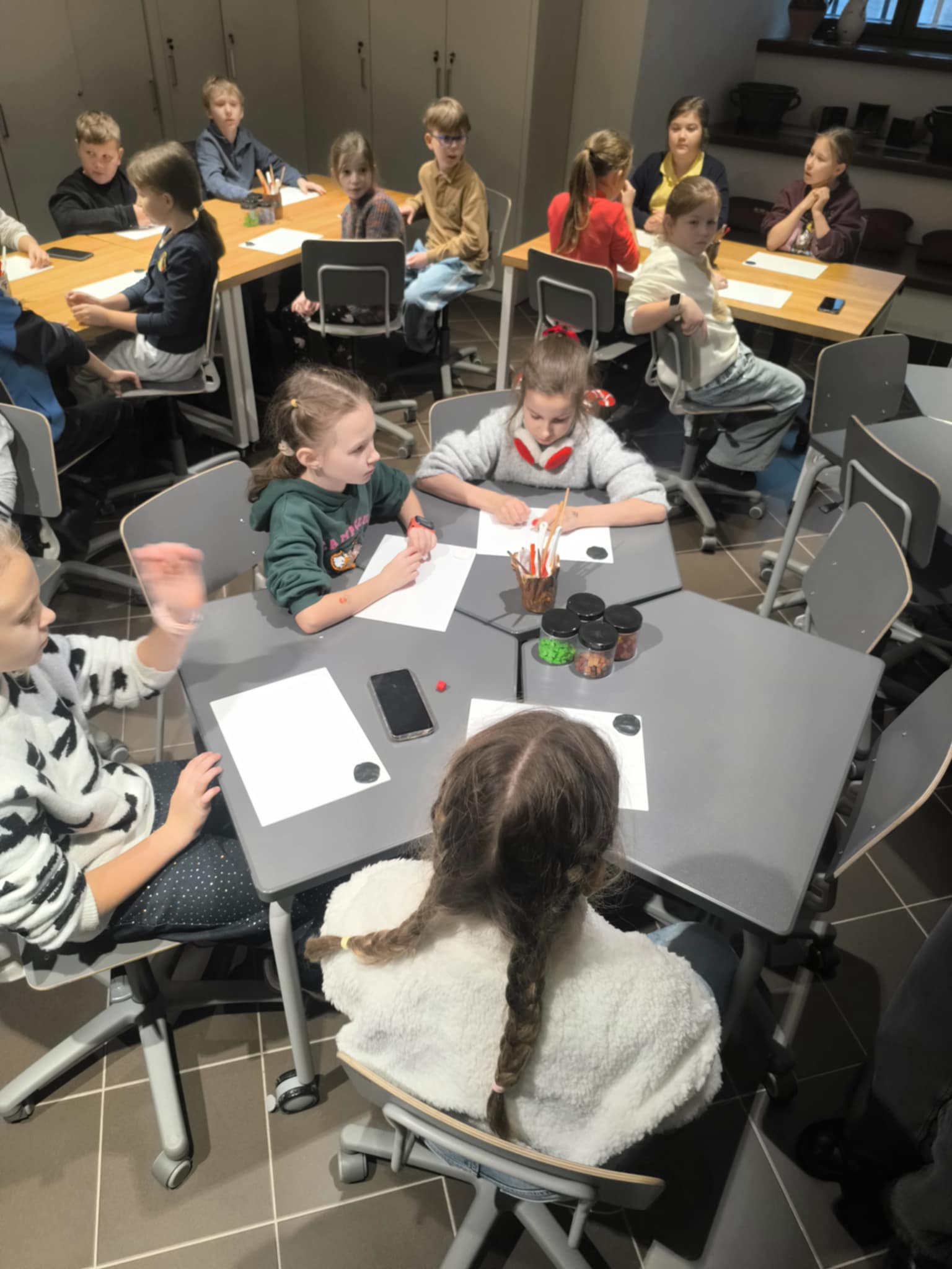 …..Atvykusius mokinius pasitiko studijos darbuotojai, papasakojo apie keramikos tradicijas, puodukų gamybos etapus bei įvairias dekoravimo technikas. Kiekvienas mokinys gavo po baltą keraminį puoduką, kuris akimirksniu tapo jų pačių mažuoju meno kūriniu. Pasitelkę spalvas, teptukus ir savo fantaziją, pirmokai kūrė vienetinius dizainus – nuo raštų ir ornamentų iki smagių personažų ar asmeninių simbolių.