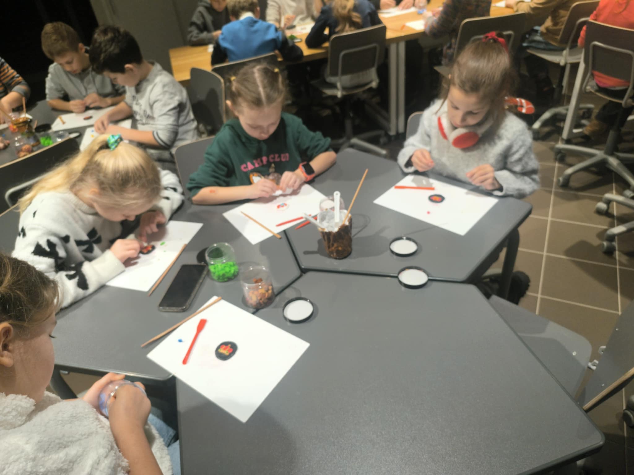 …..Šiandien bibliotekoje vyko smagios , kūrybiškos dirbtuvės „Nudažyk savo Kalėdas: rankų darbo žaisliukų magija“, kuriose dalyvavo pailgintos dienos grupės mokiniai. Vaikai, pasitelkę savo fantaziją, puošė medinius žaisliukų ruošinius, taip kurdami unikalius eglutės papuošalus. Tai buvo puikus būdas vaikams atsipalaiduoti po pamokų, lavinti smulkiąją motoriką ir pasinerti į artėjančių švenčių laukimą.