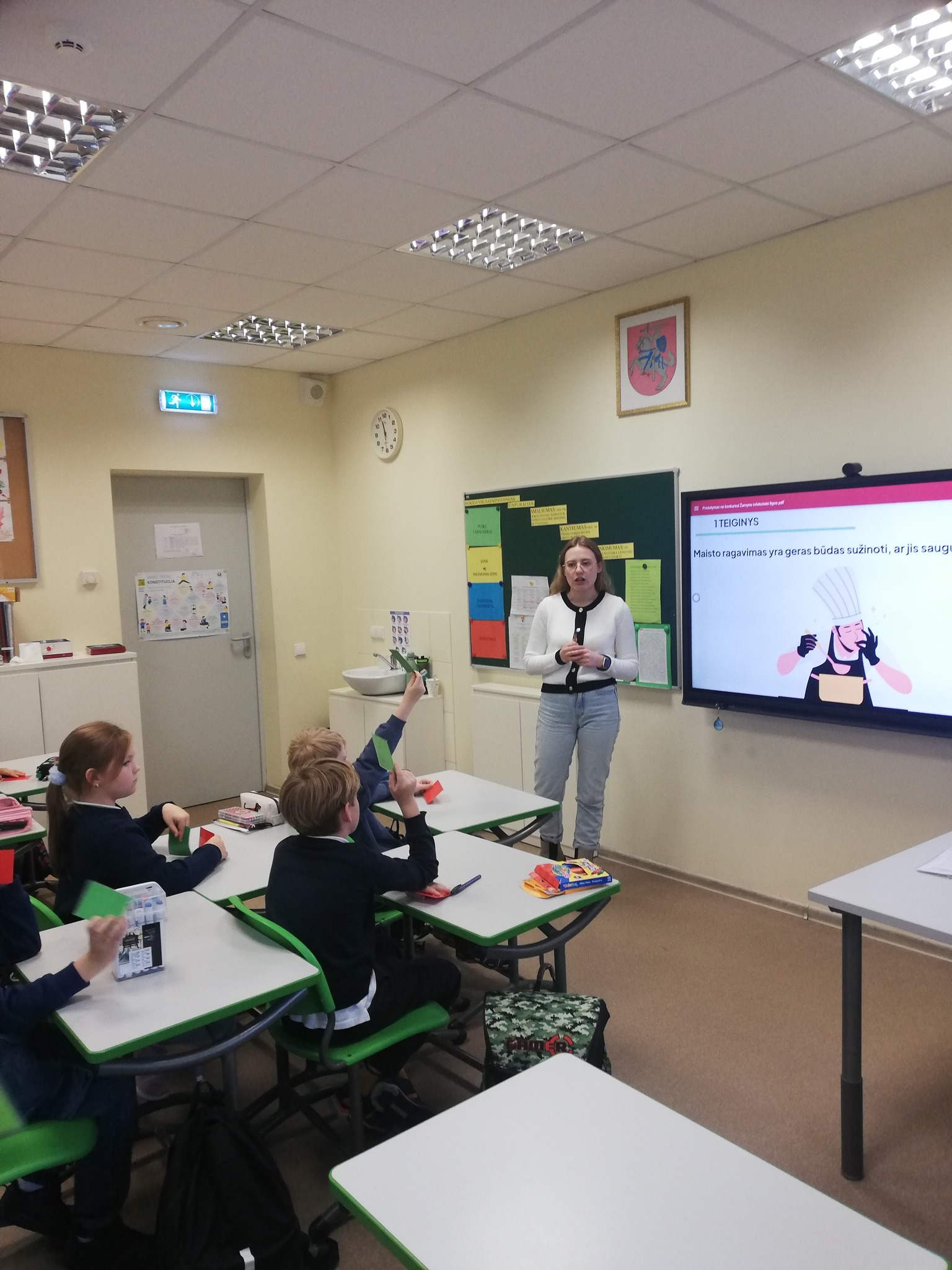 …..Pradinių klasių mokiniai dalyvavo projekte, kurio tikslas – geriau pažinti žmogaus kūną, sveikos gyvensenos principus ir aplinkosaugos svarbą. Vaikai dalyvavo Vilniaus miesto visuomenės sveikatos biuro užsiėmimuose, kurių metu sužinojo apie žarnyno infekcijas. Klausydamiesi pasakos „Kur dingo energija?“, mokiniai aiškinosi, iš kur žmogus gauna jėgų ir energijos kiekvieną dieną. Diskusijų metu aptarė, kaip kasdieniai įpročiai padeda išlikti sveikiems ir energingiems. Mokiniai tyrinėjo įvairius maisto produktus bei maistines medžiagas, aiškinosi jų naudą žmogaus organizmui. Jie kūrė sveiko maisto meniu ir spalvingus koliažus. Žaidimų metu mokėsi atpažinti sveikus ir nesveikus pasirinkimus.
