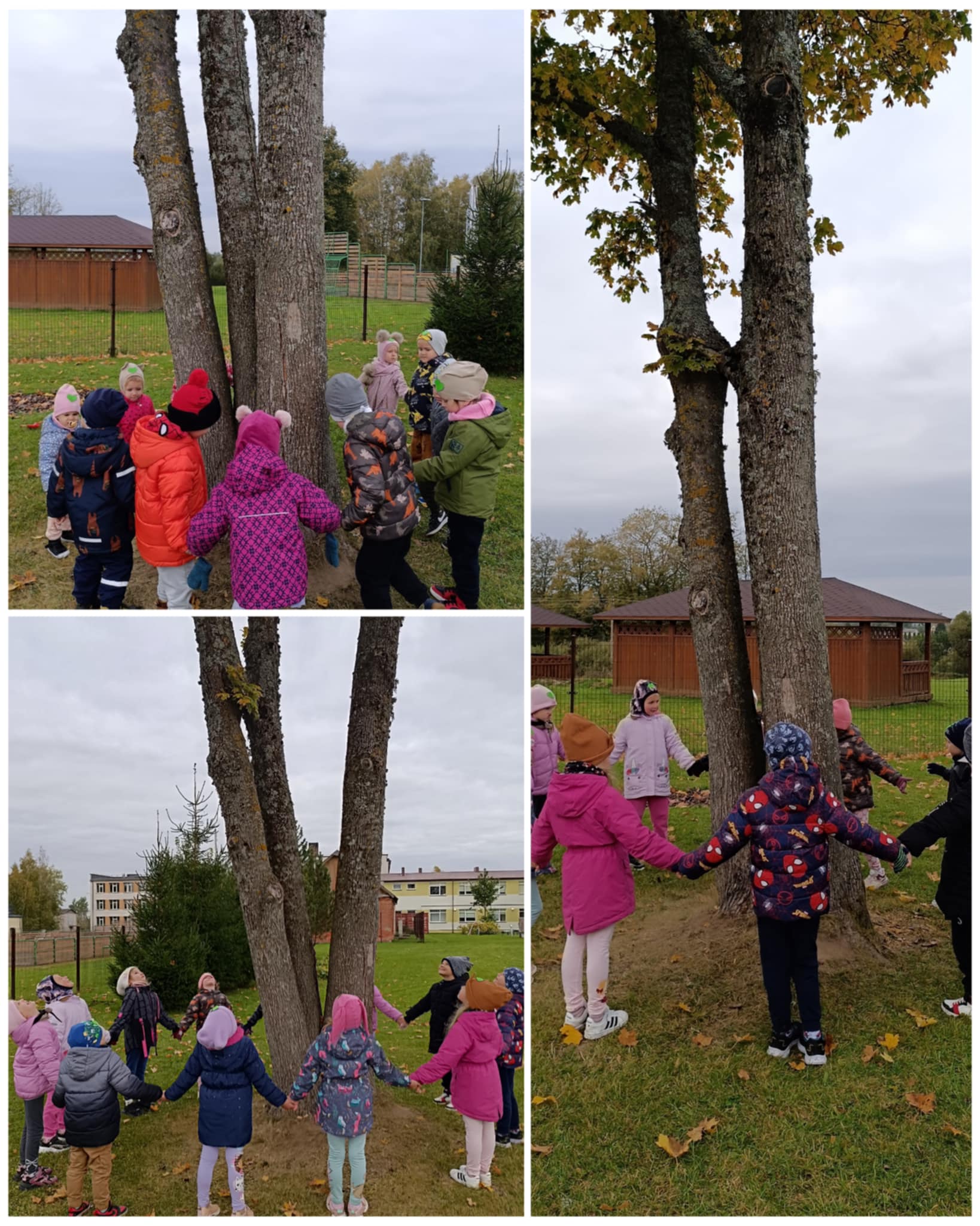 …..Po sodinimo, kuris tapo tikra fizikos ir biologijos pamokėle lauke, ugdytiniai atliko dar vieną smagią užduotį: apkabino didelį, seną medį. Mokytojos papasakojo, kad medžiai yra mūsų planetos plaučiai – jie gamina mums orą, teikia pavėsį karštą vasarą ir yra namai paukščiams. Vaikai galėjo paliesti šiurkščią žievę, apžiūrėti nukritusius lapus ir pajusti medžio tvirtumą.