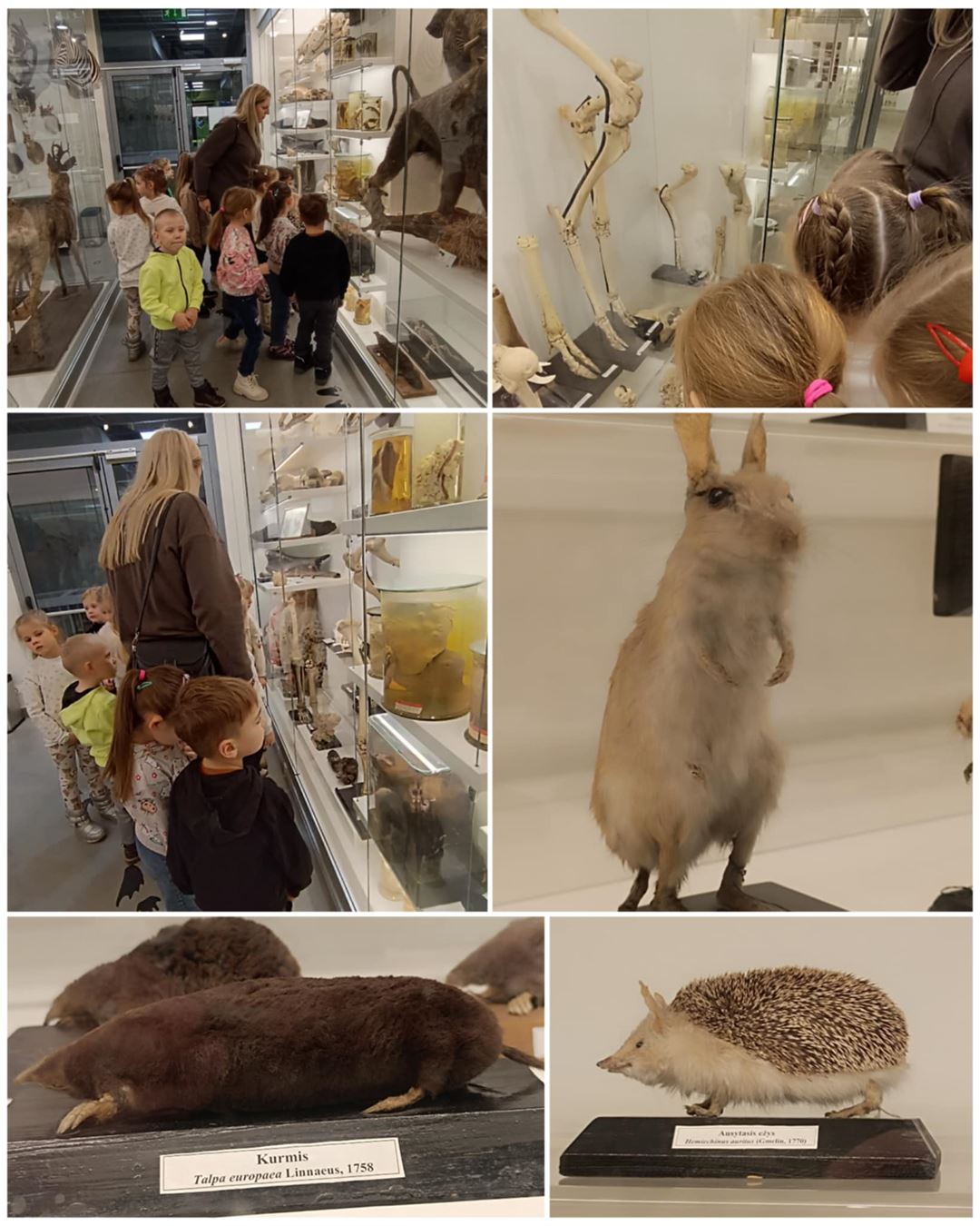 …..Ši išvyka virto tikru nuotykiu, kupinu atradimų ir džiaugsmo. Vilniaus universiteto Gyvybės mokslų centre įsikūręs muziejus tapo puikia vieta mažiesiems pažinti gamtos įvairovę. Vaikai turėjo unikalią galimybę išvysti tūkstančius eksponatų – nuo mažiausių vabzdžių ir kriauklių iki įspūdingų paukščių bei žinduolių iš viso pasaulio. Mažieji tyrinėtojai domėjosi gyvūnų prisitaikymu, stebėjo skirtingas gyvūnų grupes, mokėsi atpažinti, kuo skiriasi Lietuvoje gyvenantys ir iš tolimų šalių atkeliavę gyvūnai. Ši išvyka ne tik praturtino vaikų žinias, bet ir skatino kūrybiškumą, kritinį mąstymą bei lavino pastabumą.