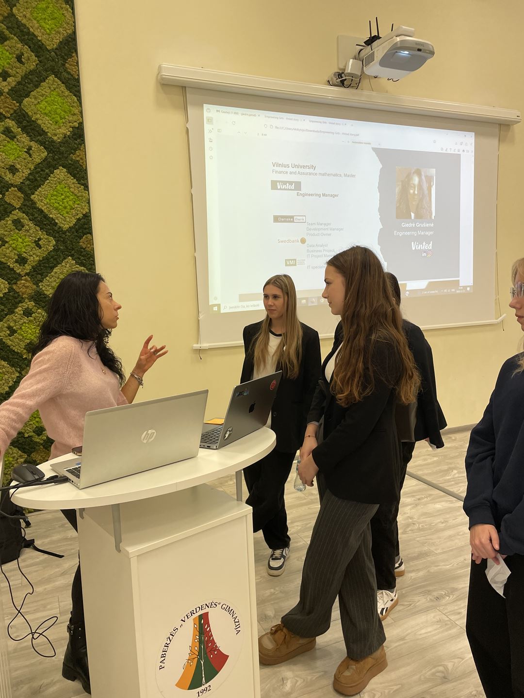 …..Lapkričio 11 dieną Paberžės „Verdenės“ gimnazijoje vyko susitikimas su Lietuvos Junior Achievement projekto Empowering Girls narėmis – atstovėmis iš įmonės „Vinted“. Susitikime dalyvavo gimnazijos 8–IVG klasių merginos. Jo tikslas – supažindinti mokines su stipriomis, profesinėje veikloje daug pasiekusiomis moterimis, suteikti galimybę praplėsti savo požiūrį, laužyti nusistovėjusias nuostatas ir kūrybiškai pažvelgti į pasirinktos profesijos galimybes.