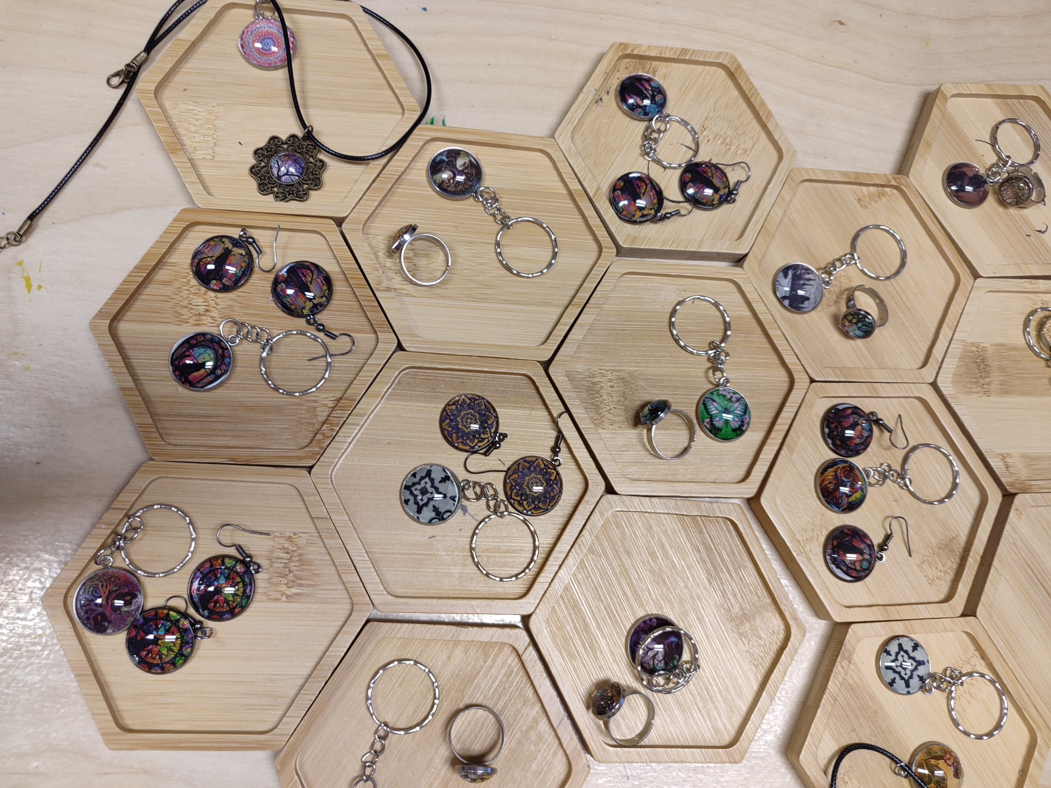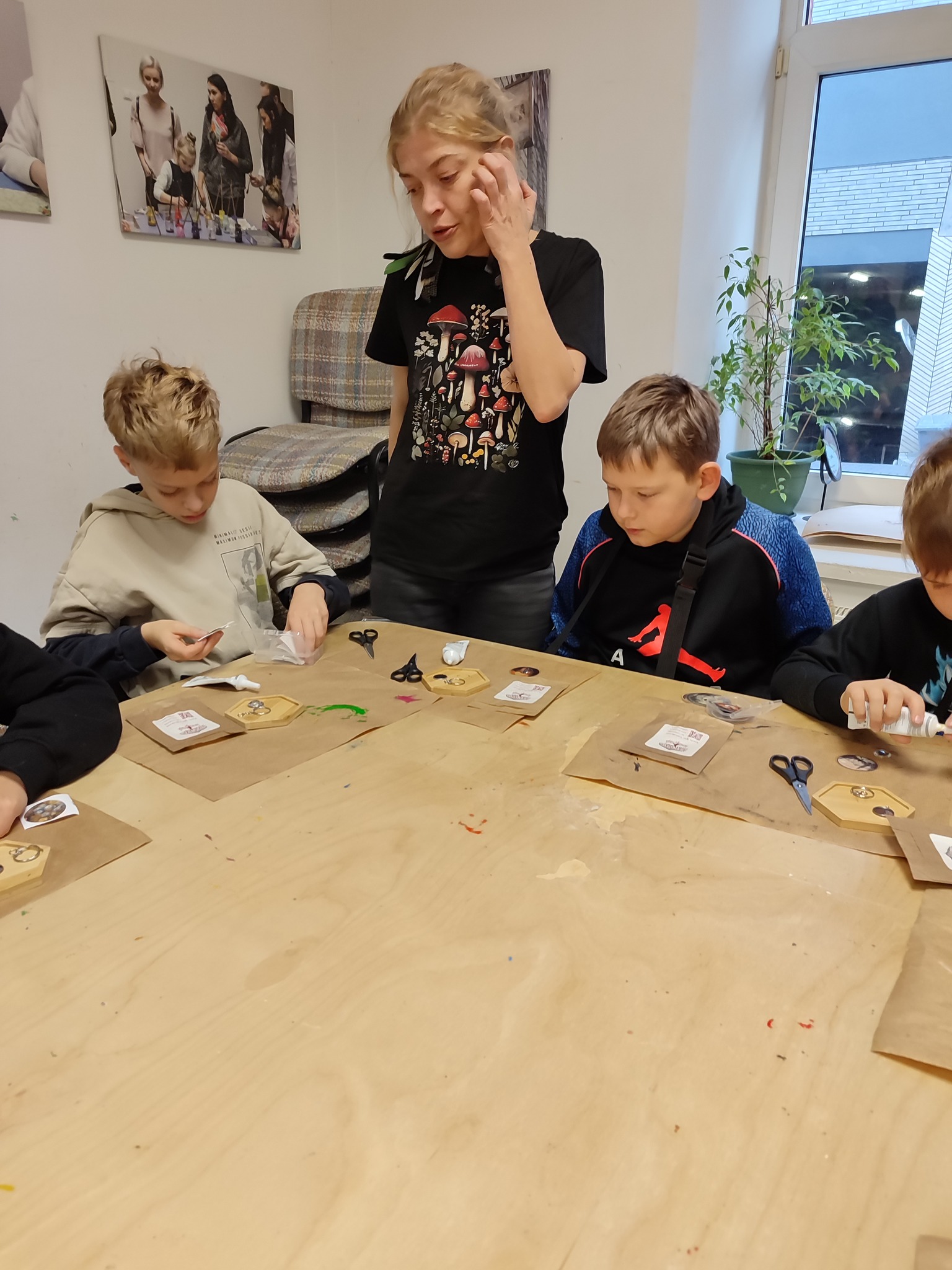 …..,,Stiklo papuošalų gamyba“. Užsiėmimo metu mokiniai susipažino su pagrindinėmis stiklo papuošalų kūrimo technikomis, medžiagomis ir įrankiais, susikūrė unikalius stiklo papuošalus. Iš stikliukų ir metalinių laikiklių, naudodami įvairias iliustracijas, kūrė raktų pakabukus, žiedelius, auskarus, kaklo papuošalus. Iliustracijų gausa suteikė kūrybinę laisvę, o mokytojos patarimai padėjo tinkamai atlikti užduotį. Kiekvieno vaiko pagamintas papuošalas atspindėjo jo pastangas ir kūrybiškumą, kurie suteikė darbams išskirtinumo.