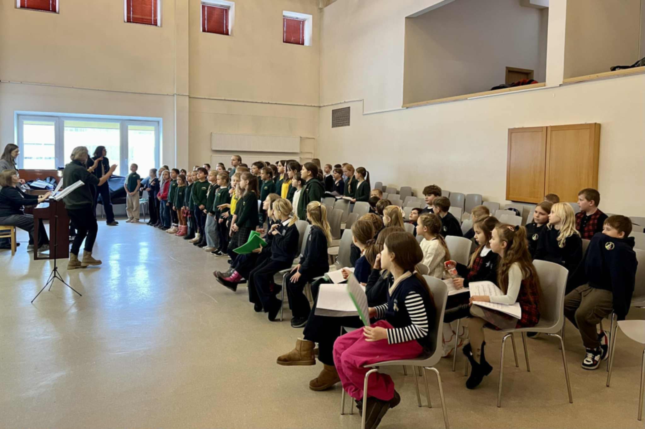 …..Lapkričio 25 dieną Vilniaus Martyno Mažvydo progimnazijoje vyko pirmoji jungtinė jaunučių chorų repeticija, kurioje dalyvavo ir ,,Verdenės“ gimnazijos jaunučių choras. Kartu dainuoti susibūrė Karalienės Mortos mokyklos, Martyno Mažvydo progimnazijos ir Buivydiškių pagrindinės mokyklos choristai. Šis susitikimas tapo ypatinga patirtimi mūsų mokiniams, kurie kartu mokėsi Moksleivių dainų šventėje skambėsiančio jaunučių choro repertuaro ir tęsė pasirengimą svarbiam etapui.
