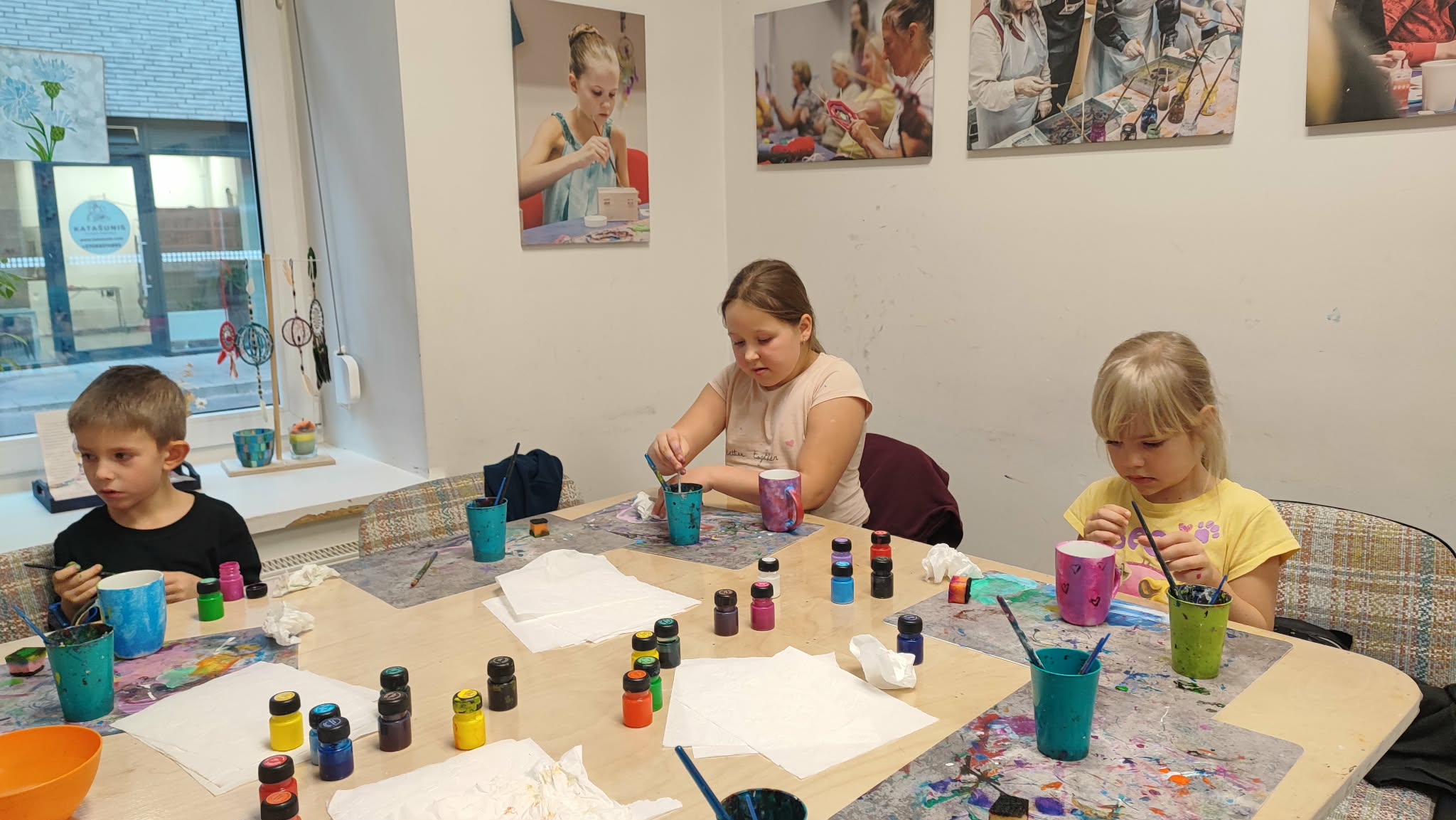 …..Atvykusius mokinius pasitiko studijos darbuotojai, papasakojo apie keramikos tradicijas, puodukų gamybos etapus bei įvairias dekoravimo technikas. Kiekvienas mokinys gavo po baltą keraminį puoduką, kuris akimirksniu tapo jų pačių mažuoju meno kūriniu. Pasitelkę spalvas, teptukus ir savo fantaziją, pirmokai kūrė vienetinius dizainus – nuo raštų ir ornamentų iki smagių personažų ar asmeninių simbolių.