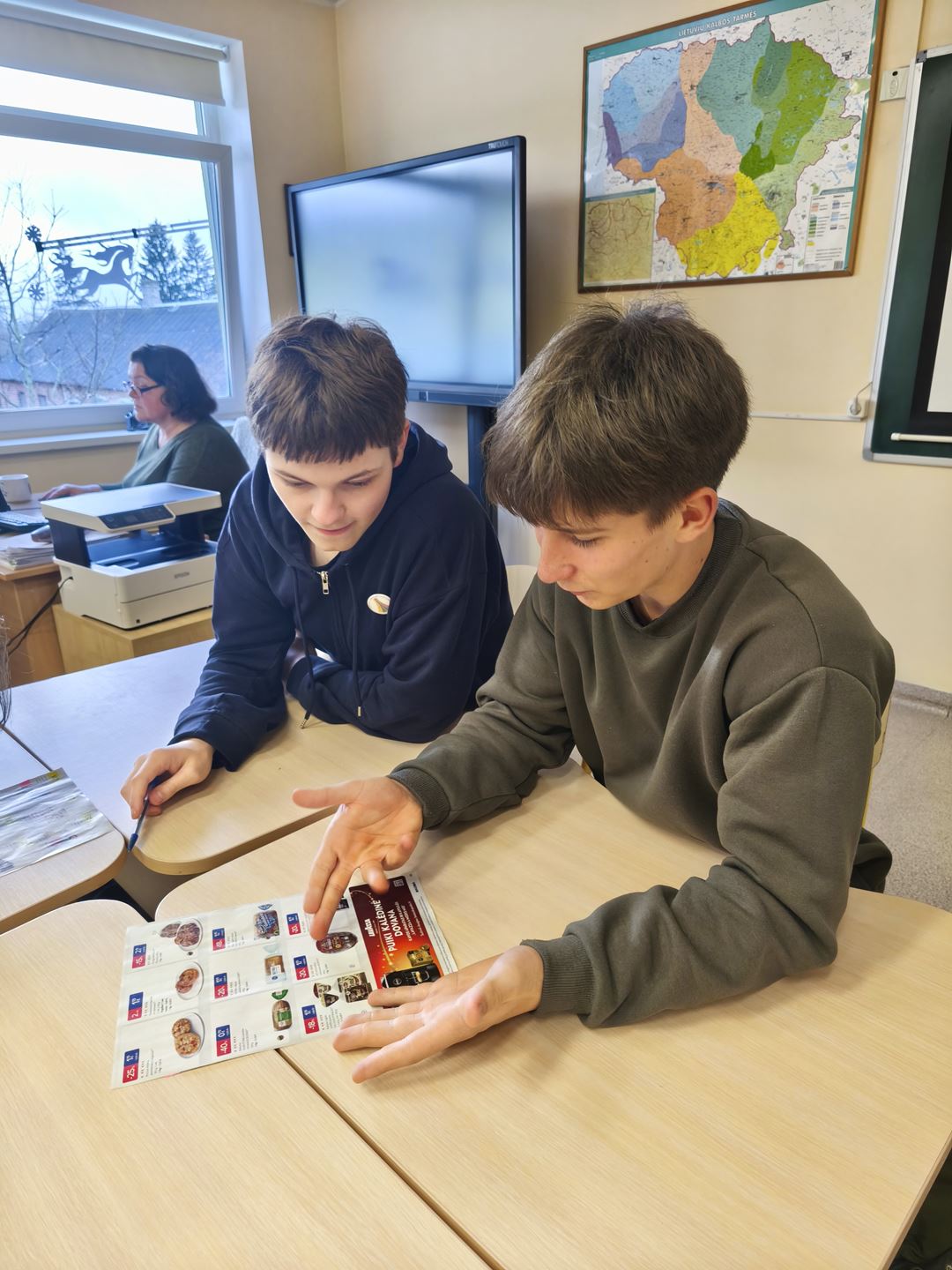 …..Pamokos tikslas – atrasti, analizuoti, kritiškai vertinti. Mokiniai dirbo diferencijuotose grupėse, pasitelkdami lietuvių kalbos ir matematikos dalykų įgūdžius. Tokia integracija padėjo į reklamas pažvelgti iš kelių perspektyvų: kalbinės, kuriose analizuota, kokios įtaigos priemonės naudojamos, kaip kuriamas emocinis poveikis, kokiais žodžiais bandoma įtikinti vartotoją; loginės ir matematinės, leidžiančios tiksliai įvertinti, ar reklamoje pateikiama informacija – nuolaidos, procentai, palyginimai – yra tikra ar manipuliatyvi. Tokiu būdu mokiniai ne tik gilino dalykines žinias, bet ir ugdė vieną svarbiausių XXI amžiaus gebėjimų – kritinį mąstymą.