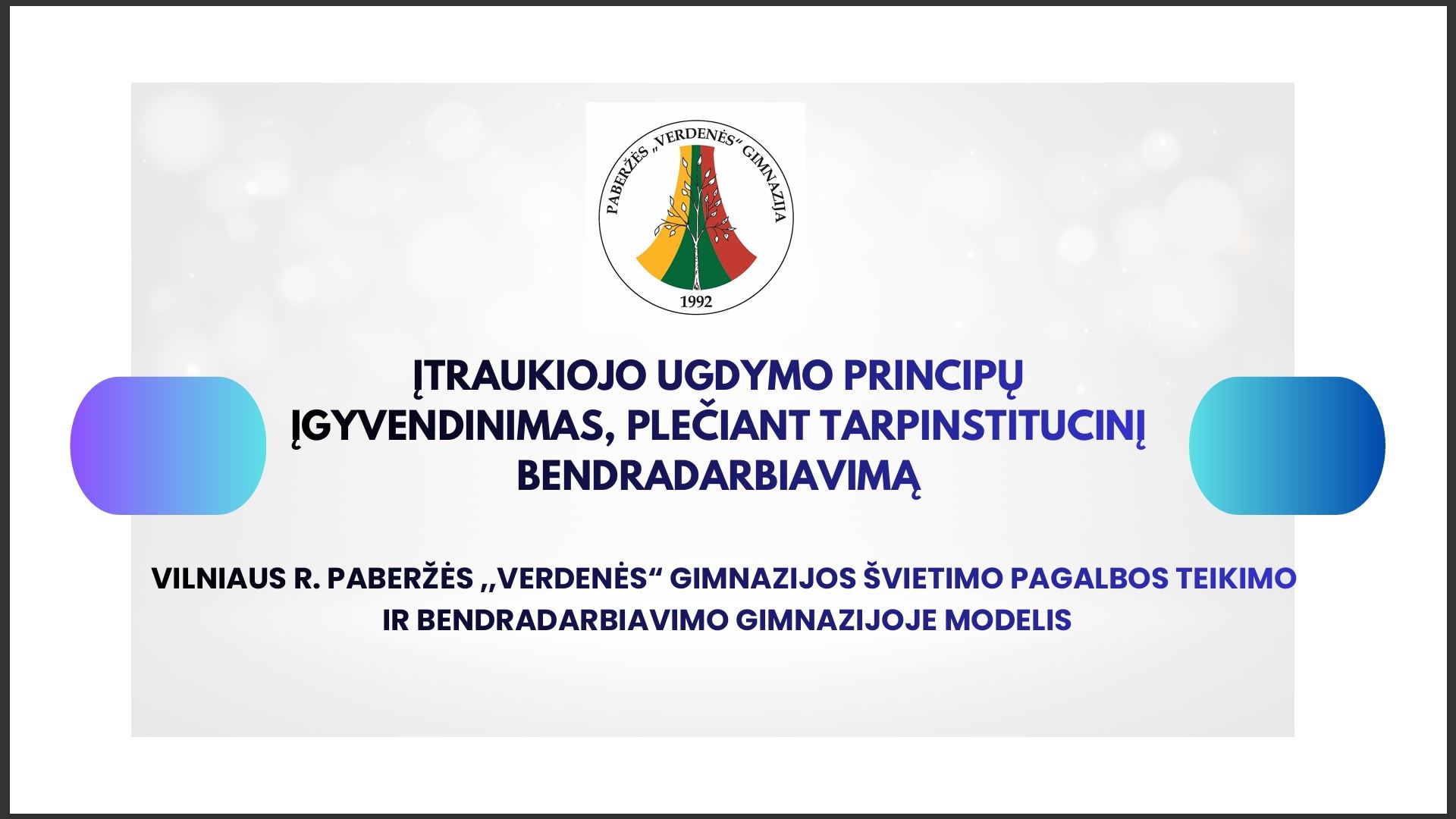 …..Įgyvendinant projektą, sukurta ir praktiškai išbandyta švietimo įstaigų tinklaveika, orientuota į realių sprendimų paiešką įtraukties srityje. Projekto metu vyko kryptingos veiklos: gimnazijose organizuoti mokymai apie įtraukiojo ugdymo metodus ir strategijas, stiprintos Vaiko gerovės komisijų narių kompetencijos, diegtos papildomos priemonės specialiųjų ugdymosi poreikių mokinių pažangai stebėti ir analizuoti. Organizuota konferencija apie universalaus dizaino principų taikymą mokyklose, kurioje dalyvavo visų bendradarbiaujančių gimnazijų atstovai. Projekto metu parengtos ir visoms gimnazijoms pristatytos rekomendacijos dėl įtraukiojo ugdymo gerinimo.