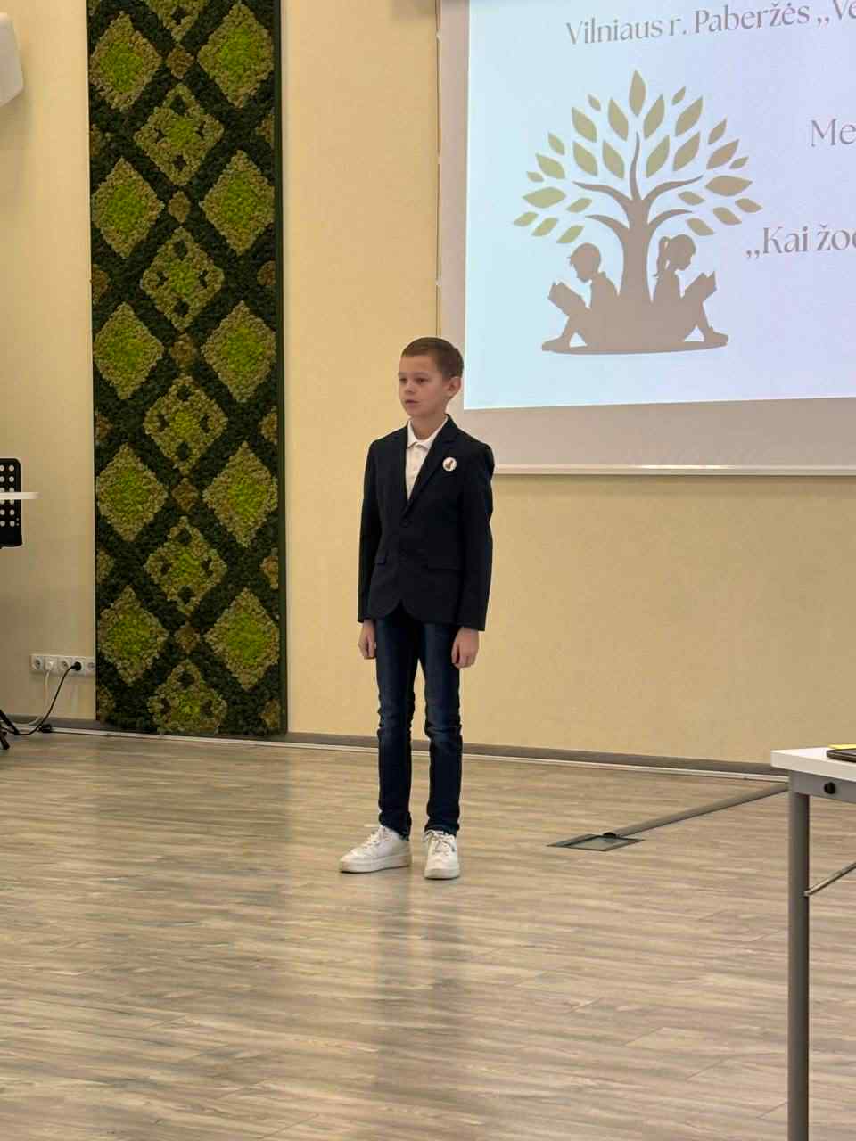 …..Renginyje dalyvavę 5–IVG klasių mokiniai dar kartą įrodė, kad poezija jaunam žmogui yra artima ir prasminga. Meninio skaitymo konkursas tapo ne tik varžytuvėmis, bet ir švente, skatinančia meilę literatūrai bei gimtajam žodžiui.