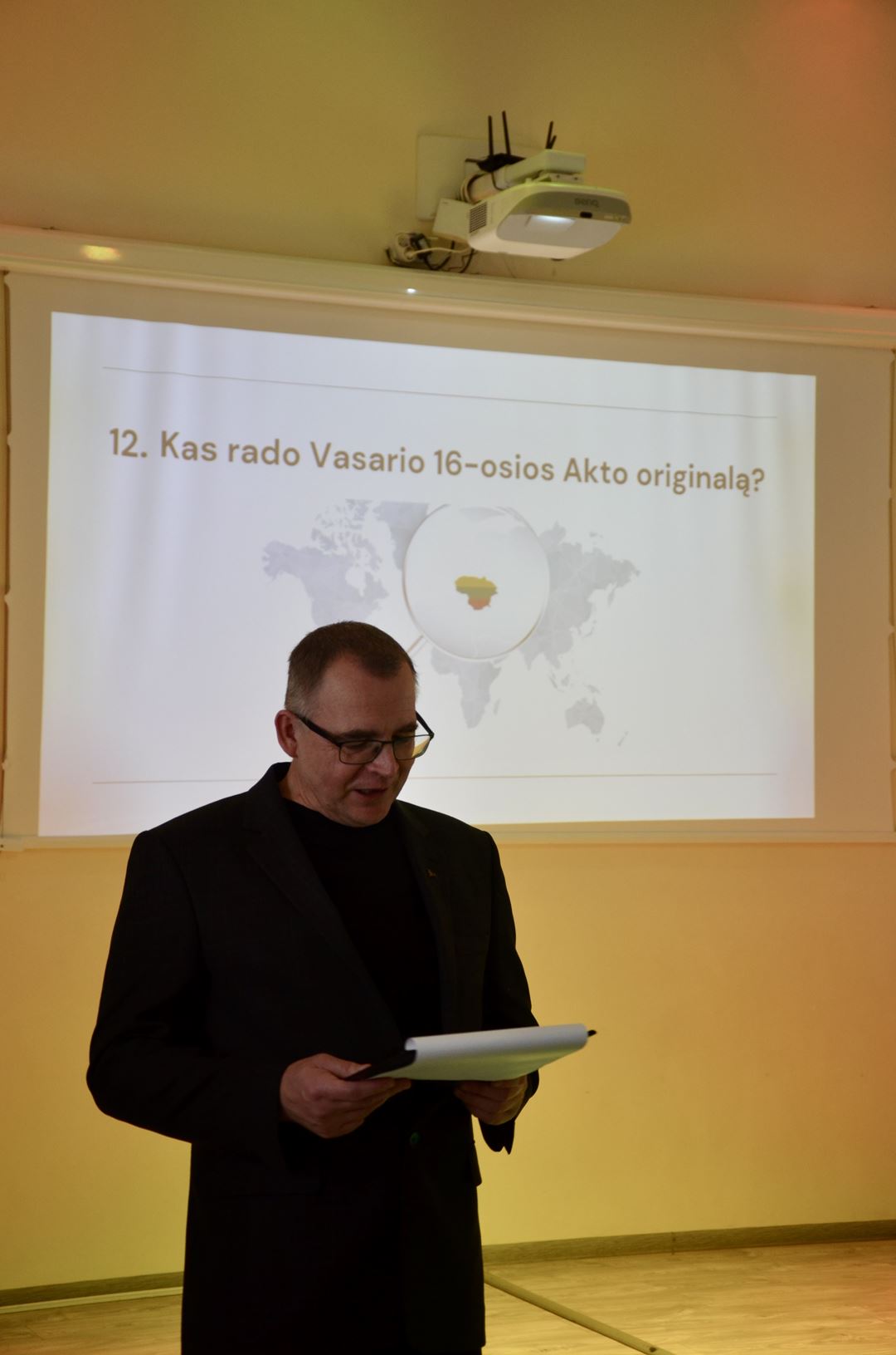 …..Renginio metu istorijos mokytojas Deimantas Palkevičius šiuolaikiškai ir įdomiai pristatė Vasario 16-osios Nepriklausomybės Akto signatarus, jų ryžtą ir svarbą Lietuvos valstybės atkūrimo kelyje. Šventės pabaigoje mokytojas organizavo mini viktoriną „Ką aš žinau apie Vasario 16-ąją?“, kuri įtraukė mokinius ir paskatino dar labiau domėtis savo šalies istorija.
