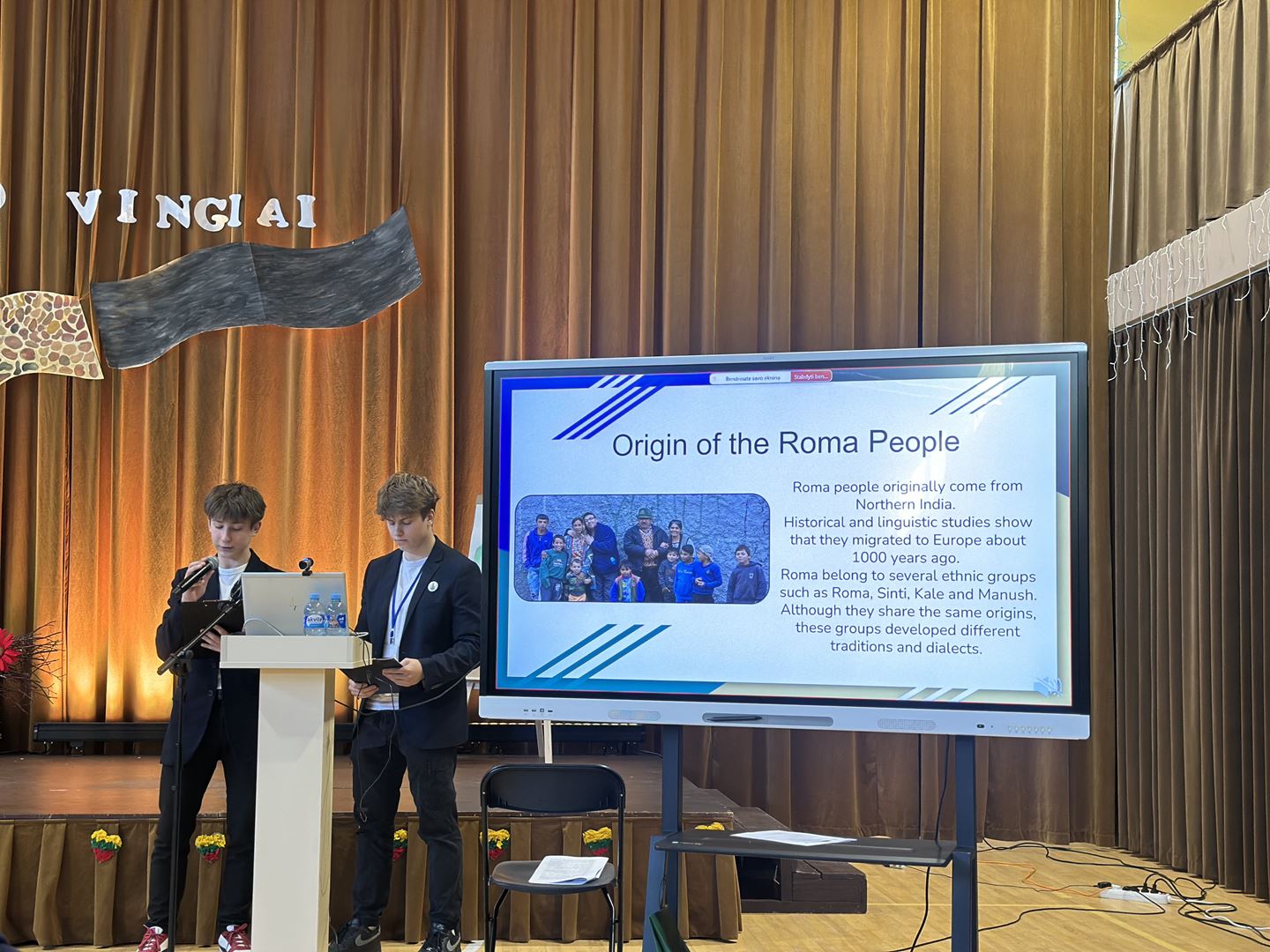 …..Kovo 13 dieną Vilniaus r. Lavoriškių gimnazijoje dalyvavome tarptautinėje mokinių gerosios patirties sklaidos konferencijoje „Prarastos ir išsaugotos istorijos: Lietuvos tautų kelias per laiko vingius“. IIG klasės mokiniai Adomas Šironas ir Gabrielius Ivanovas skaitė pranešimą anglų kalba apie romų tautą, o IIIG klasės mokiniai Ugnė Juzefovičiūtė ir Martin Jackov pristatė pranešimą apie pasaulį garsinančius lietuvius.
