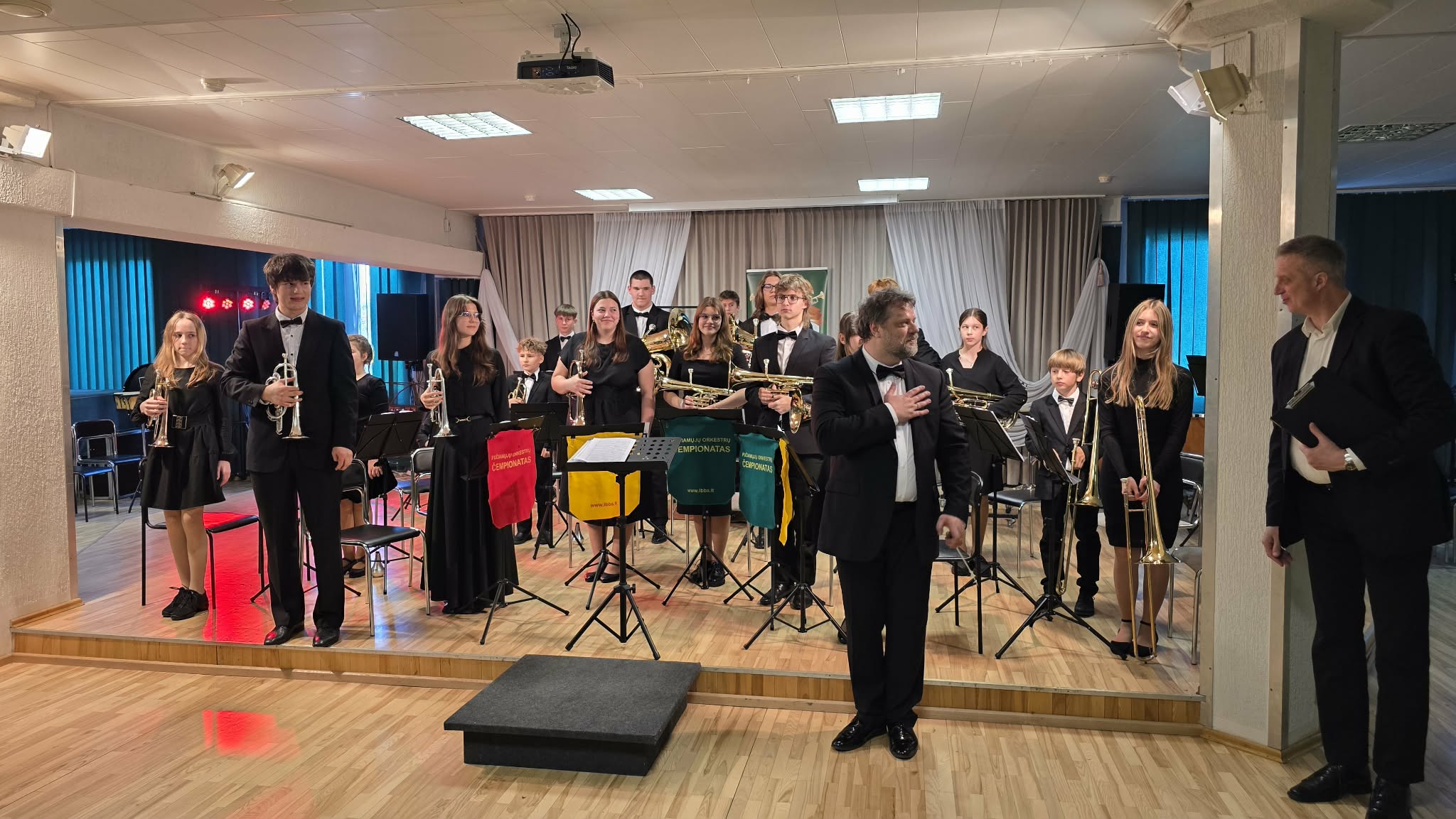 …..B kategorijoje šįkart prizinių vietų nepelnėme – tarp 11 orkestrų užėmėme 5 vietą. Tačiau orkestro vadovas, neformaliojo švietimo vyresnysis mokytojas Tadas Šileika, buvo įvertintas geriausio kategorijos dirigento nominacija.